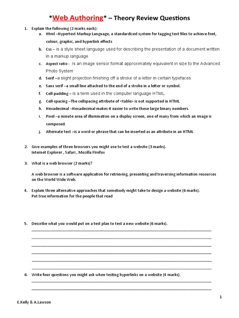 2. Give examples of three browsers you might use to test a website (3 marks).