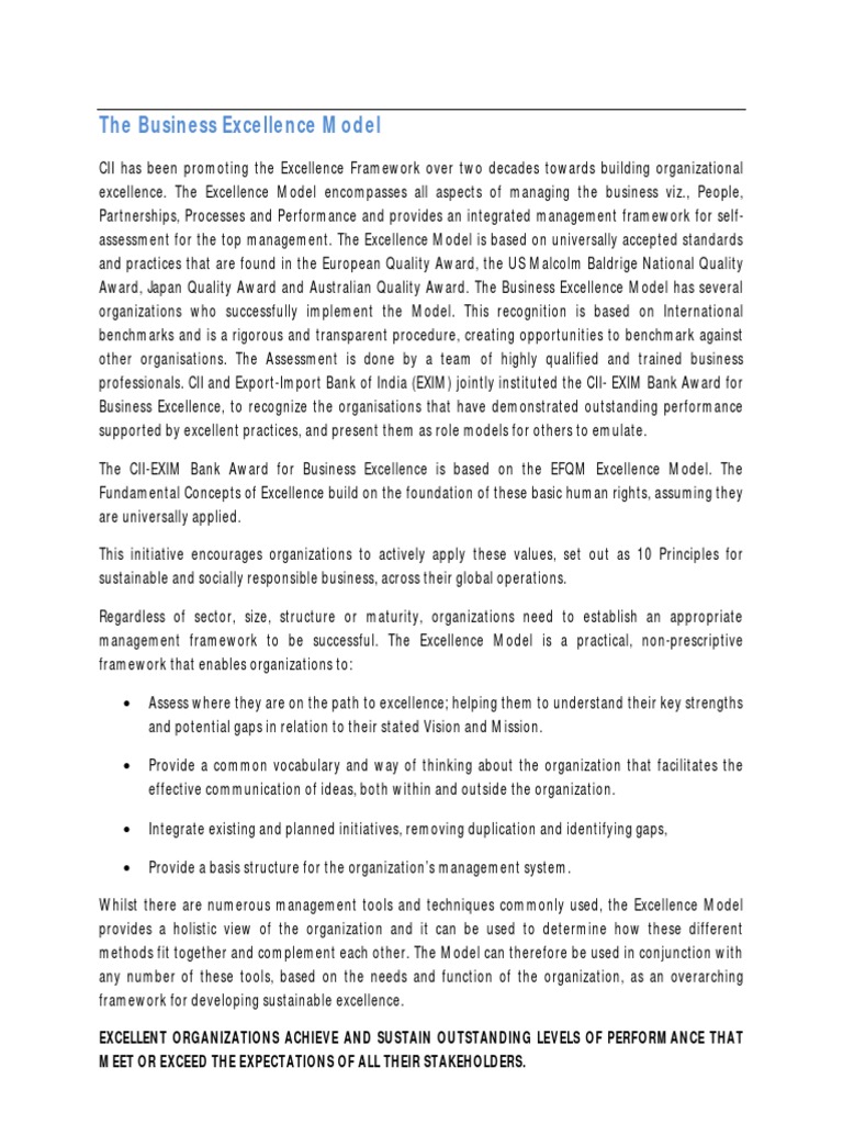 The CII-EXIM Bank Award for Business Excellence is based on the EFQM Excellence Model. The