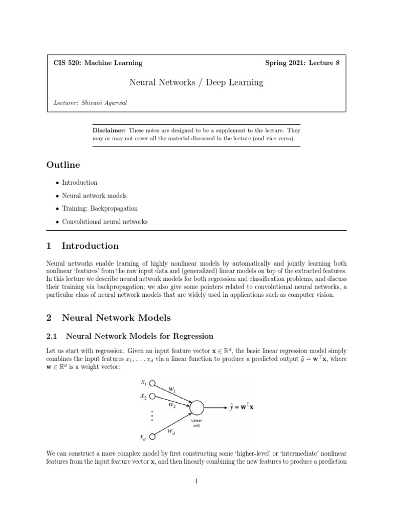 1 The term neural networks comes from viewing the hidden units as implementing an operation similar to that of a