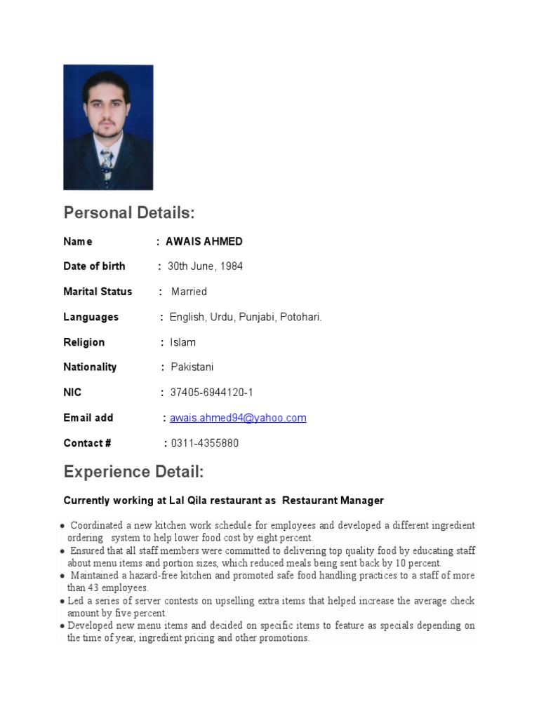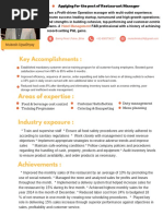 Currently working at Lal Qila restaurant as Restaurant Manager