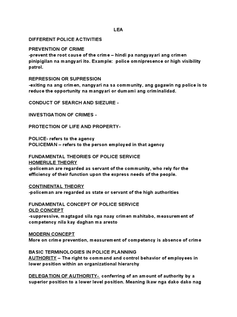 BASIC TERMINOLOGIES IN POLICE PLANNING