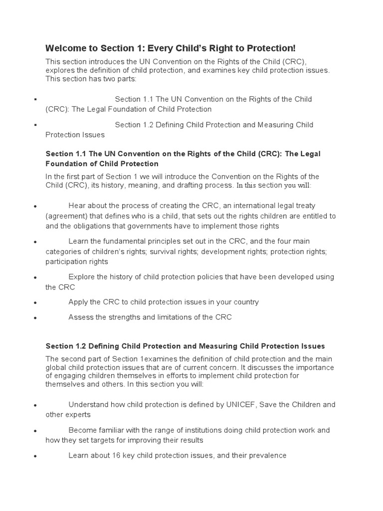 Welcome to Section 1: Every Child’s Right to Protection!