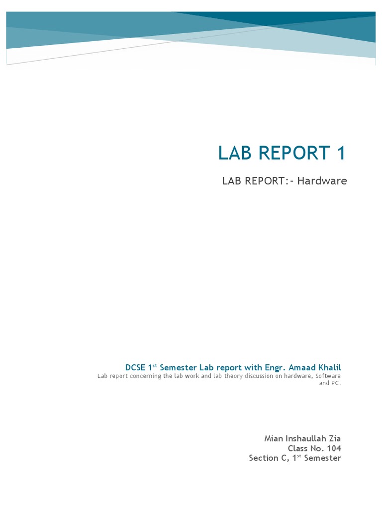 DCSE 1st Semester Lab report with Engr. Amaad Khalil