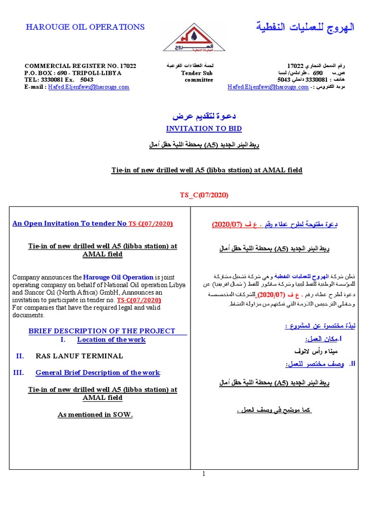 • Bids are to be submitted by hand to Harouge Oil أﻤﻴن ﺴر ﻝﺠﻨﺔ اﻝﻌطﺎءات- :ﺘﺴﻠم اﻝﻌروض ﺒﺎﻝﻴد ﻝﻌﻨﺎﻴﺔ اﻝﺴﻴد •