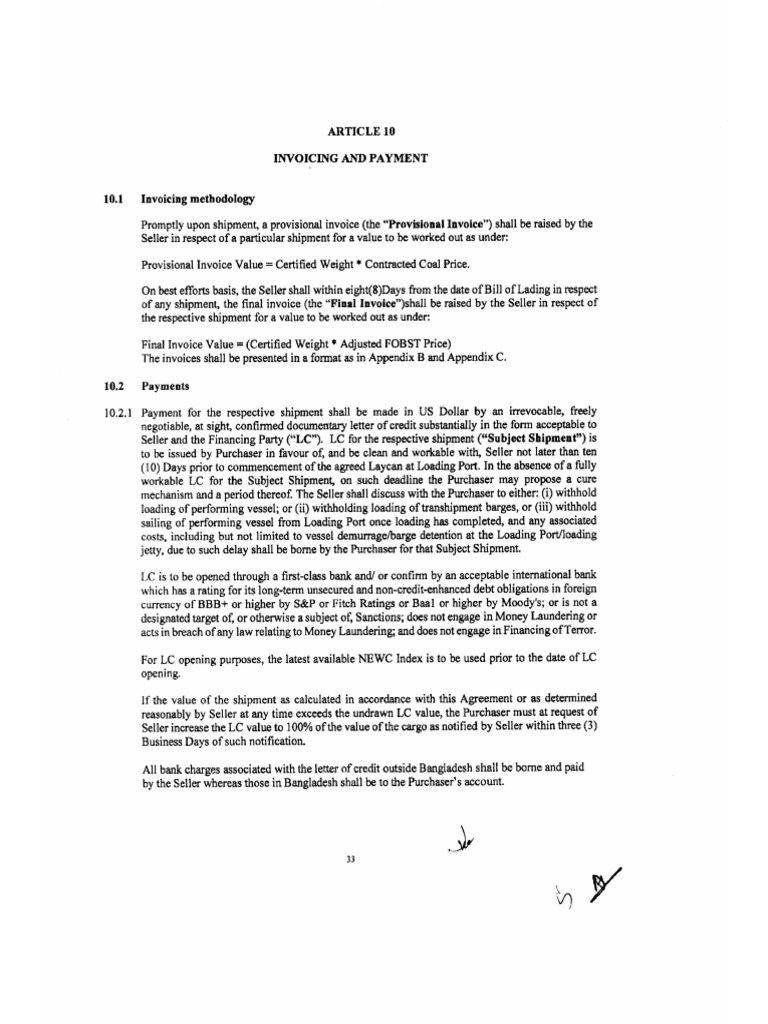 invoice in respect ofthe final delivery of Coal under this Agreement).