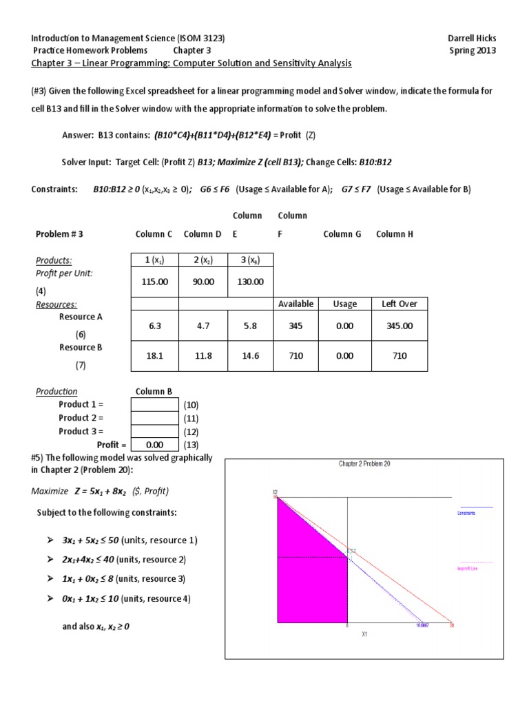 Answer: B13 contains: (B10*C4)+(B11*D4)+(B12*E4) = Profit (Z)