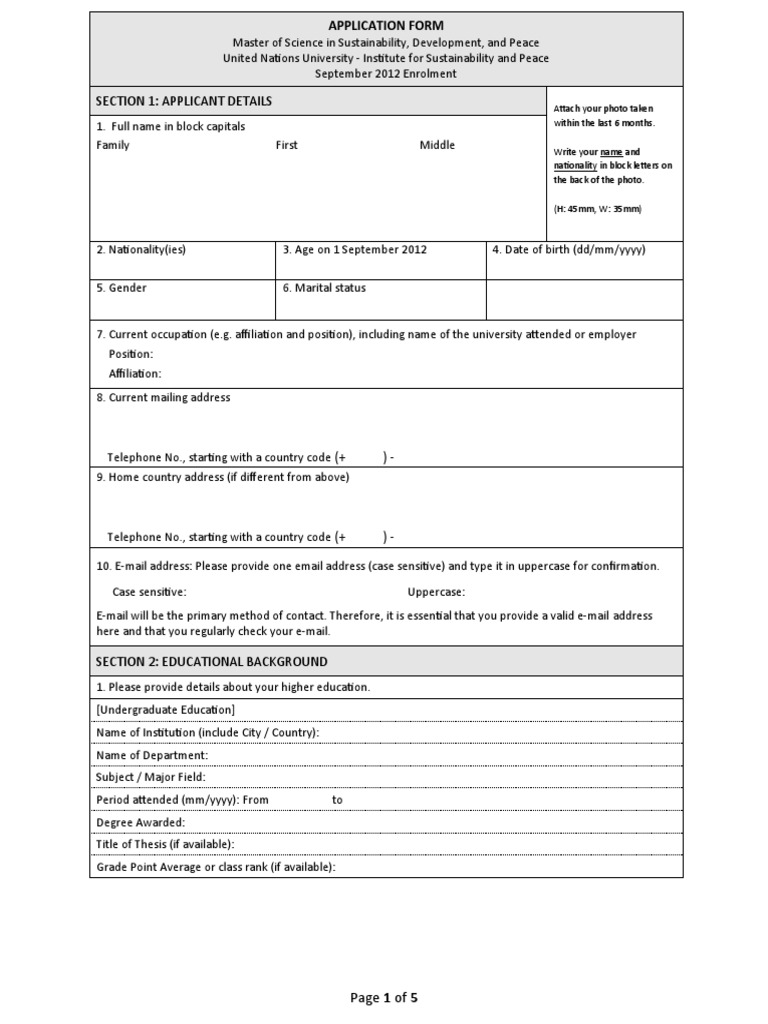 1. Application Form (this form) with photo and signature (all 5 pages to be completed in English)