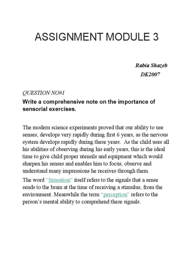 Need of Sensorial Exercises: