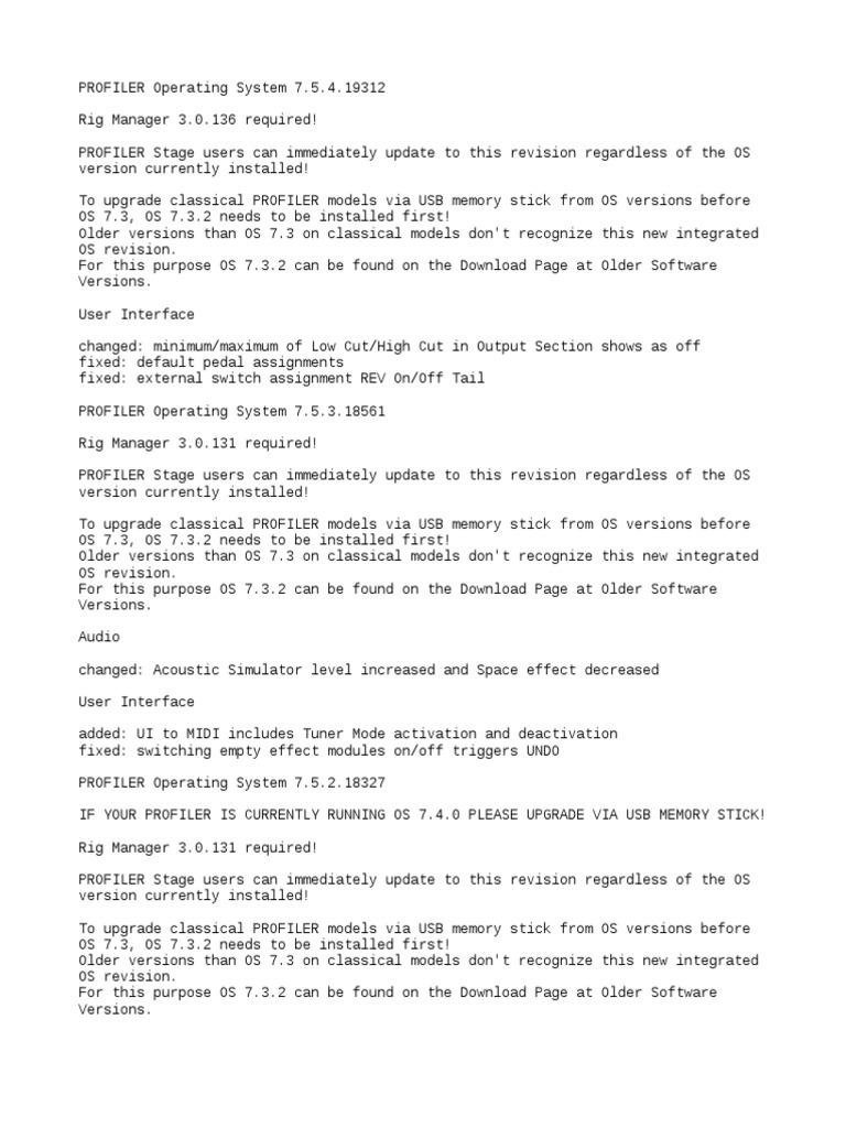 IF YOUR PROFILER IS CURRENTLY RUNNING OS 7.4.0 PLEASE UPGRADE VIA USB MEMORY STICK!