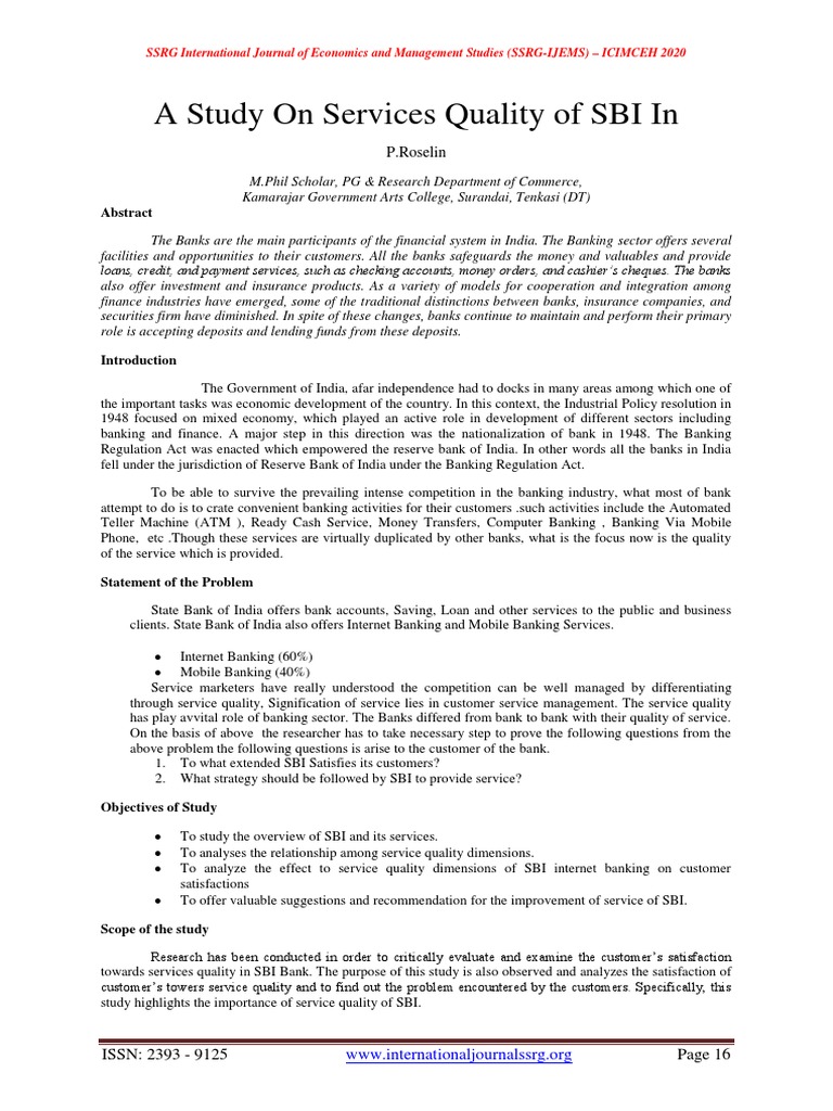 towards services quality in SBI Bank. The purpose of this study is also observed and analyzes the satisfaction of