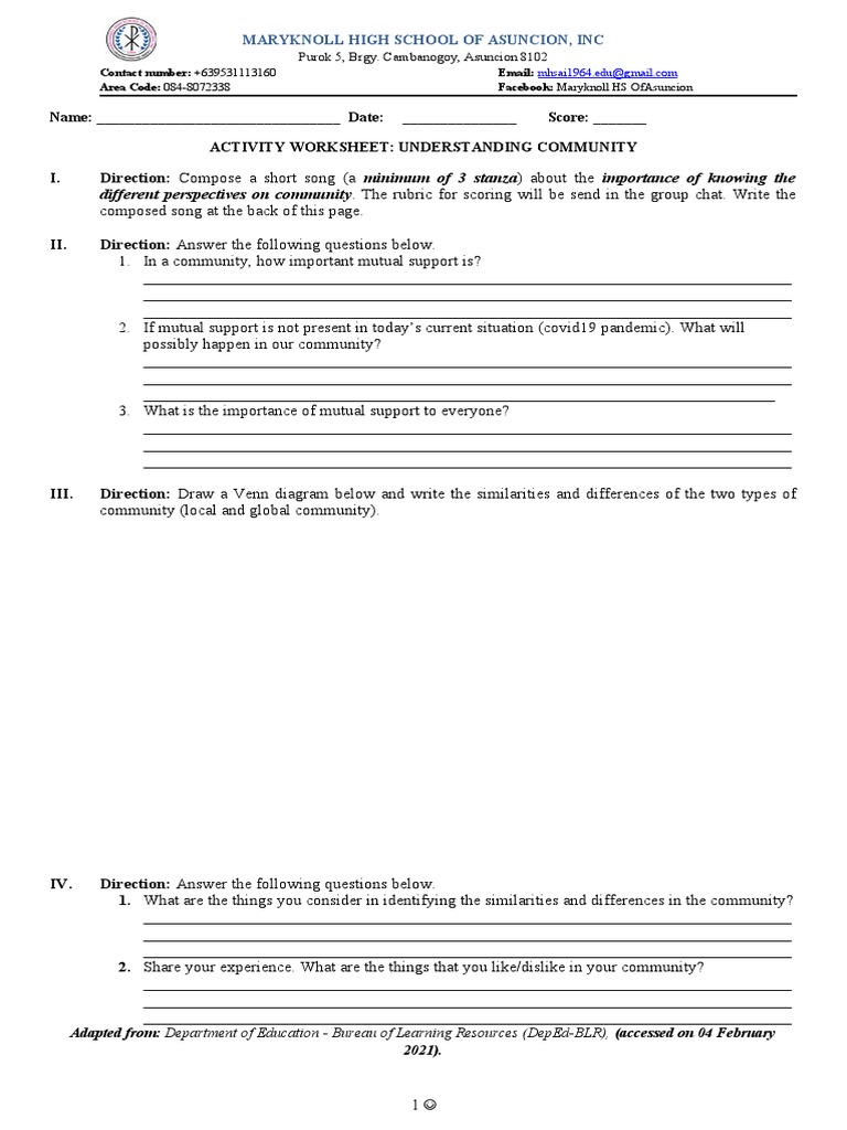 ACTIVITY WORKSHEET: UNDERSTANDING COMMUNITY