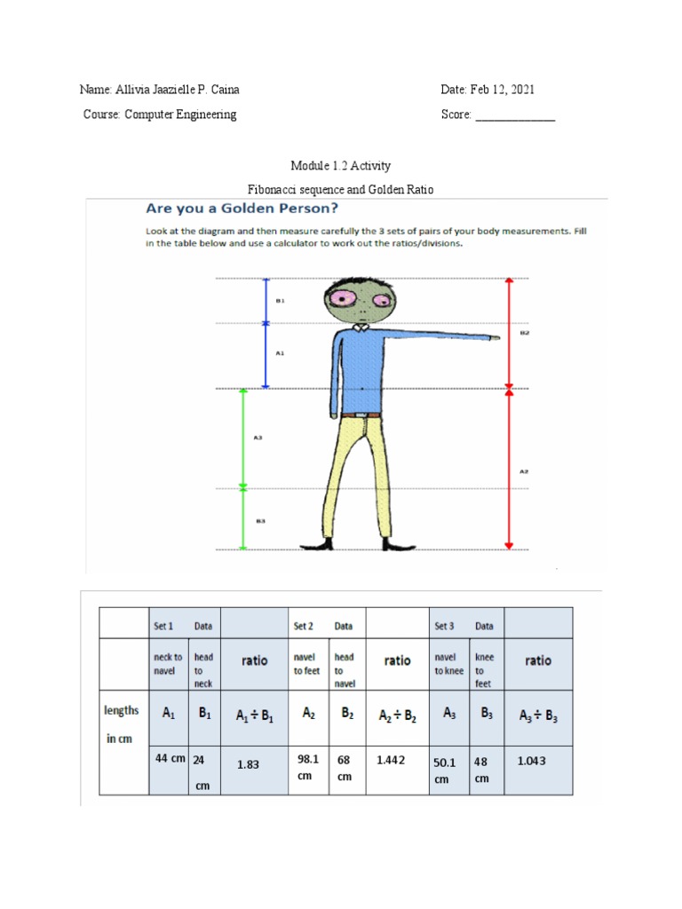 2. Does any of this measurement corresponds to the golden ratio? Explain.
