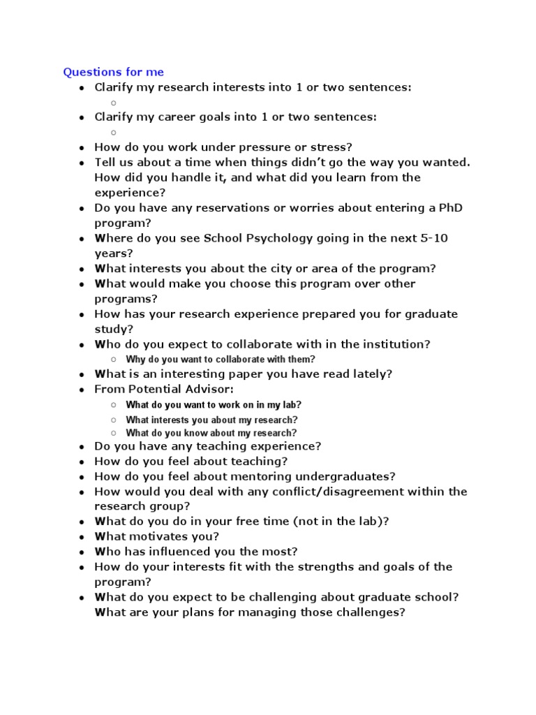 ● Prepare 1 min, 5 min and 10 min responses to the question