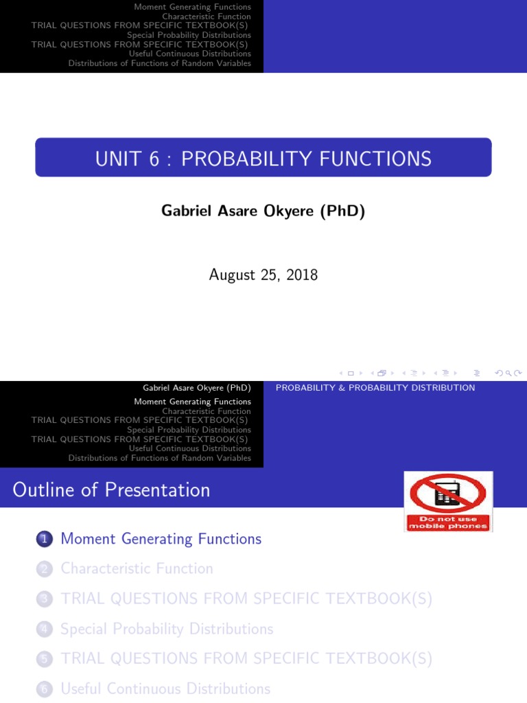 UNIT 6 : PROBABILITY FUNCTIONS