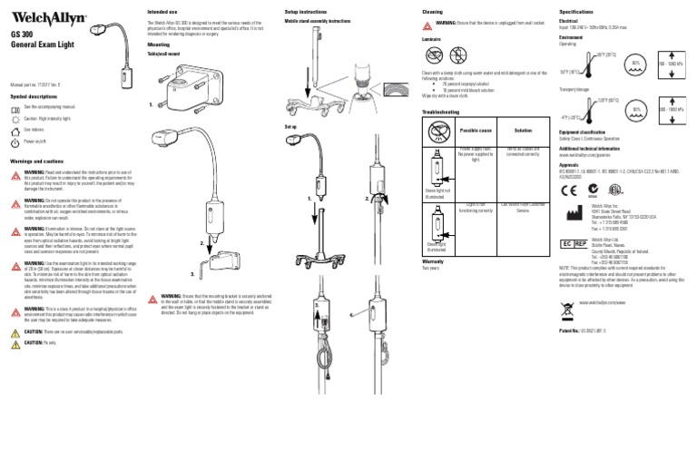 The Welch Allyn GS 300 is designed to meet the various needs of the Mobile stand assembly instructions WARNING: Ensure that the device is unplugged from wall socket. Electrical