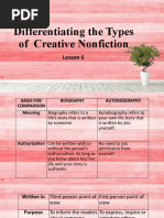 LEARNING 1. Compare and contrast the different forms and types of creative nonfictional text. (HUMSS_CNF11/12-Iia-16)