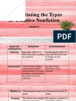 B. CONTENT Lesson 6: Differentiating the Types of Creative Nonfiction