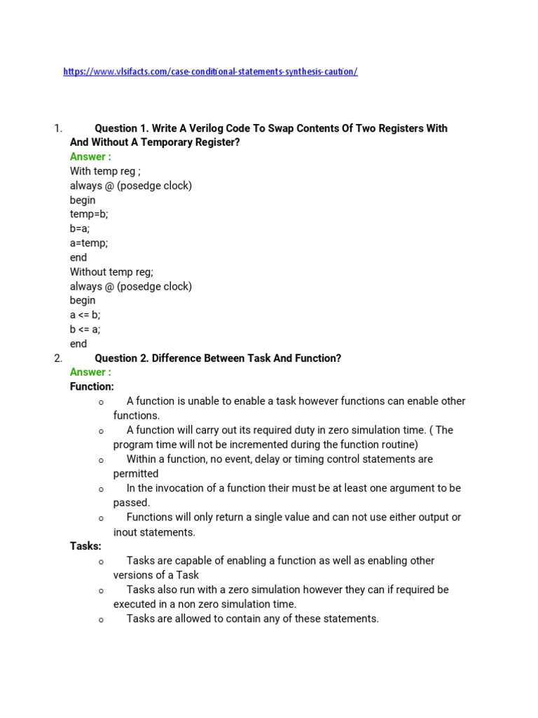 1. Question 1. Write A Verilog Code To Swap Contents Of Two Registers With