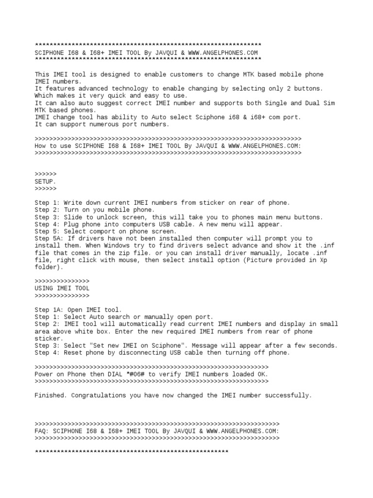 FAQ: SCIPHONE I68 & I68+ IMEI TOOL By JAVQUI & WWW.ANGELPHONES.COM: