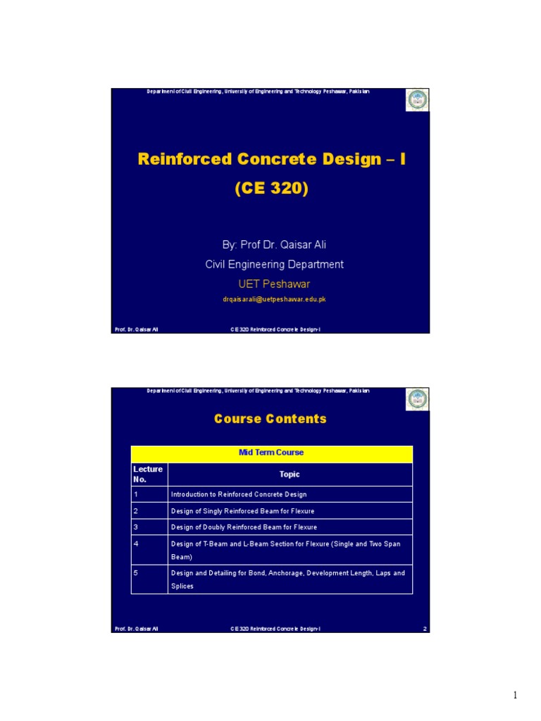 Prof. Dr. Qaisar Ali CE 320 Reinforced Concrete Design-I 2