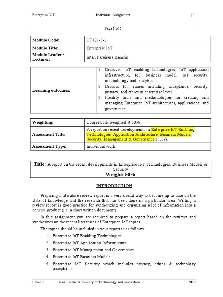 Module Title: Enterprise IoT