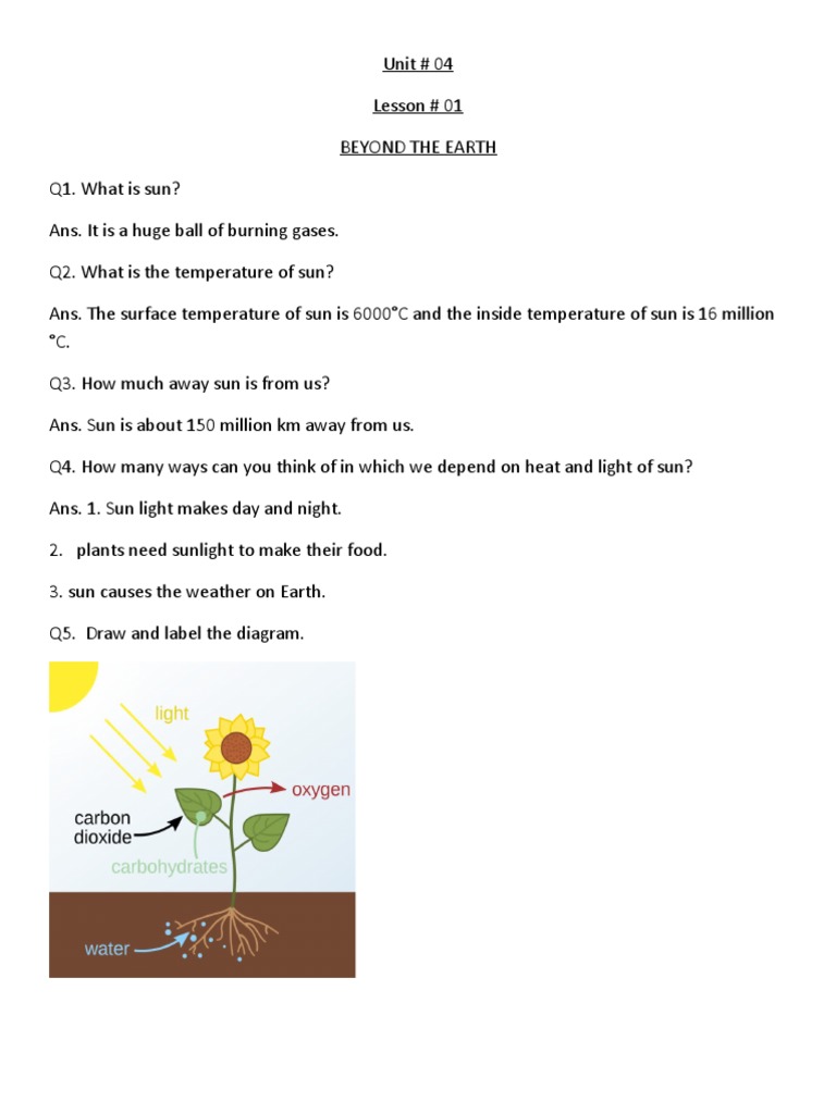 Q4. How many ways can you think of in which we depend on heat and light of sun?