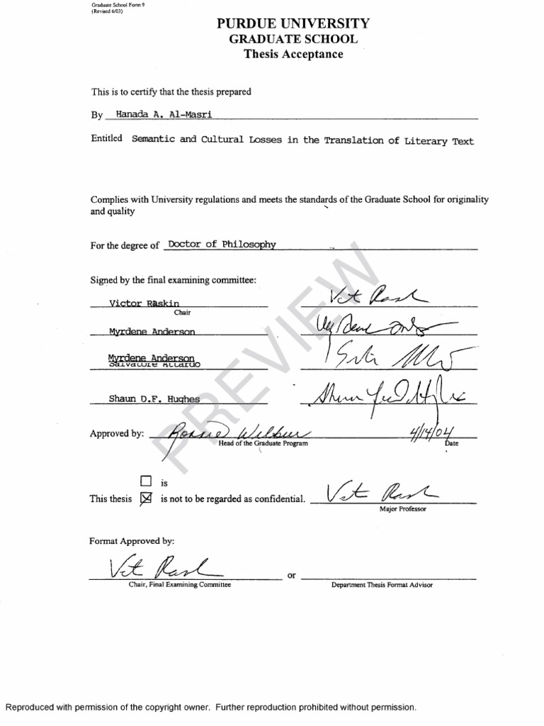 Losses in the Translation of Literary Texts. Major Professor: Victor Raskin.