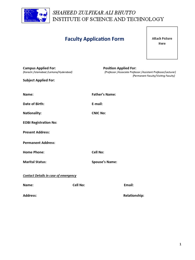 (Karachi /Islamabad /Larkana/Hyderabad) (Professor /Associate Professor /Assistant Professor/Lecturer)