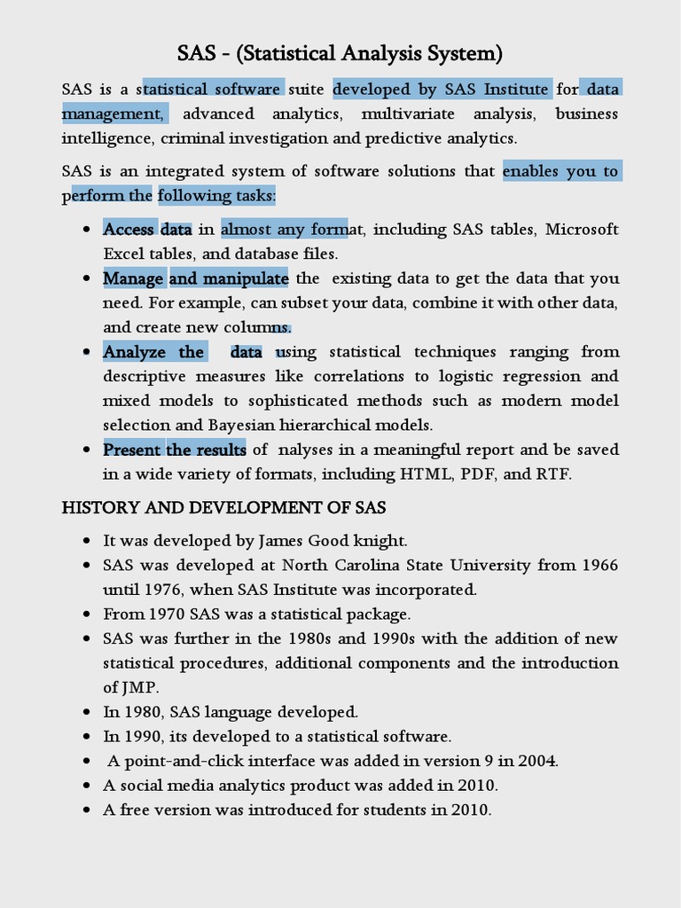 1. Easy to learn: SAS syntax is very easy to learn. It can be learned easily