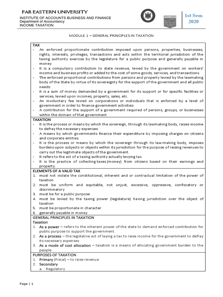 PRINCIPLES BEHIND THE POWER OF TAXATION
