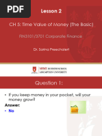 • Future Value and Present Value (Single CF): 𝐹𝑉𝑡 = 𝑃𝑉(1 + 𝑟)𝑡