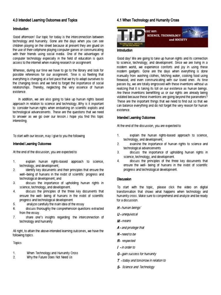 Intended Learning Outcomes 2. examine the importance of human rights to science and