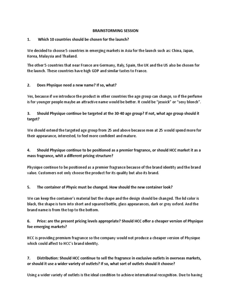 4. Should Physique continue to be positioned as a premier fragrance, or should HCC market it as a