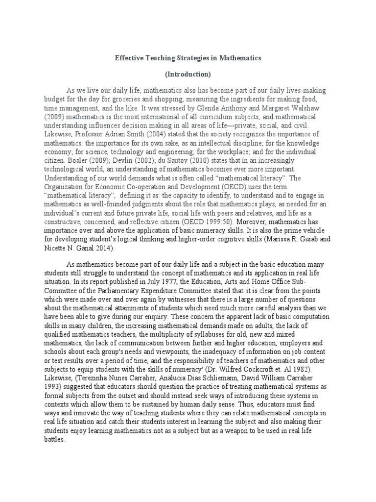 ways and innovate the way of teaching students where they can relate mathematical concepts in