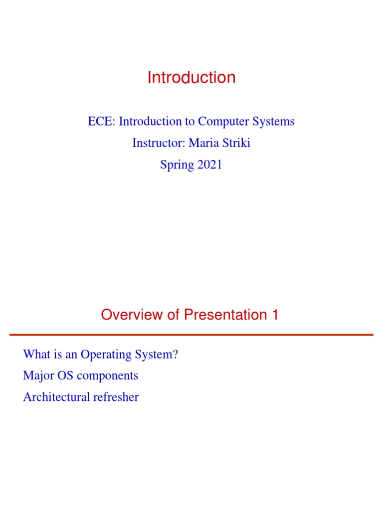 ECE: Introduction To Computer Systems Instructor: Maria Striki Spring 2021