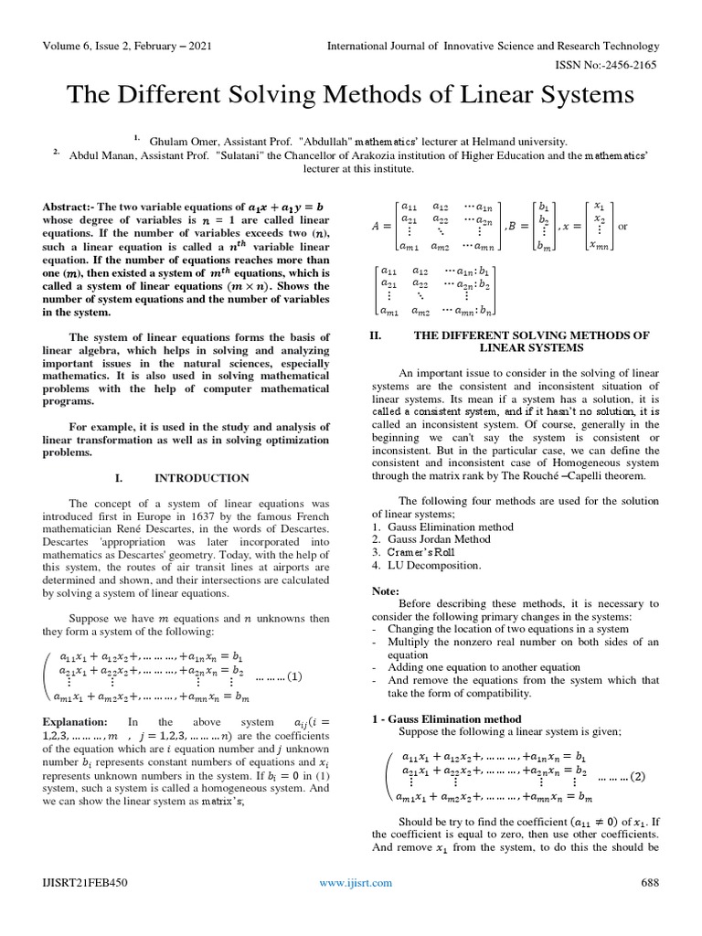The system of linear equations forms the basis of II. THE DIFFERENT SOLVING METHODS OF