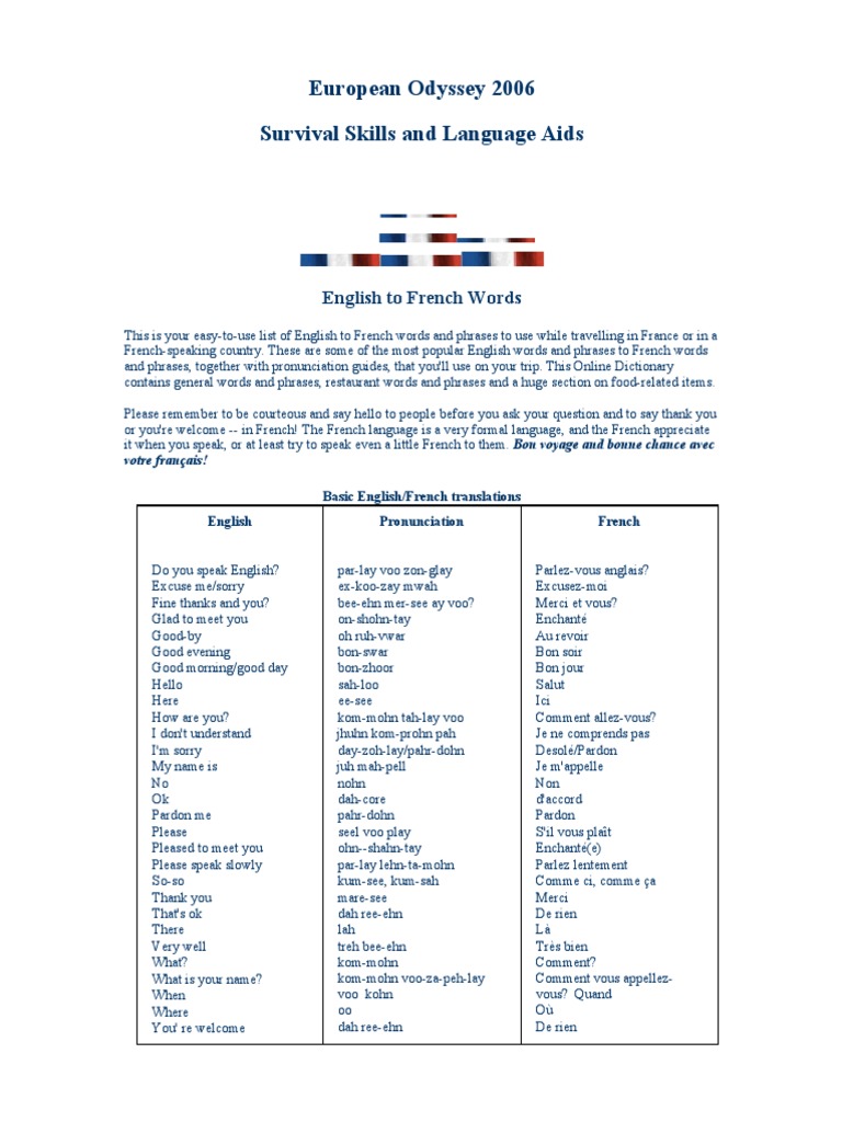 This is your easy-to-use list of English to French words and phrases to use while travelling in France or in a