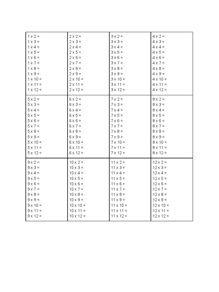 1 x 12 = 2 x 12 = 3 x 12 = 4 x 12 =