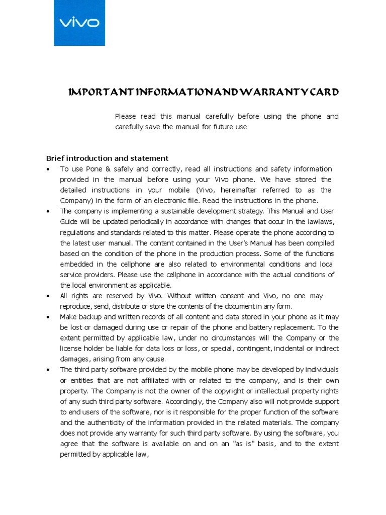 All rights are reserved by Vivo. Without written consent and Vivo, no one may