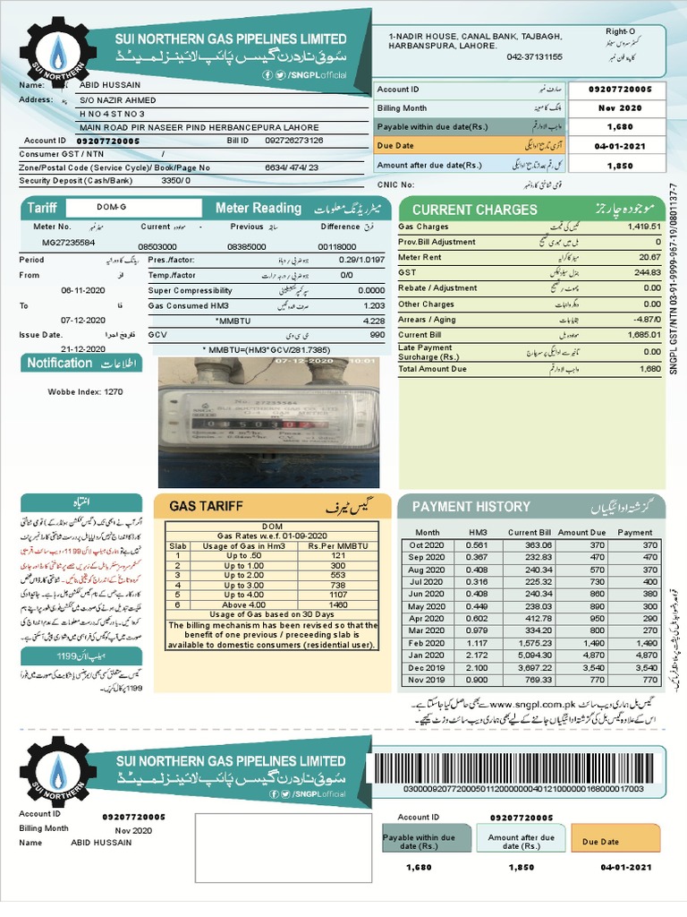 Issue Date. ﺗﺎرﯾﺦ اﺟرا GCV وی 990 Current Bill دہ 1,685.01