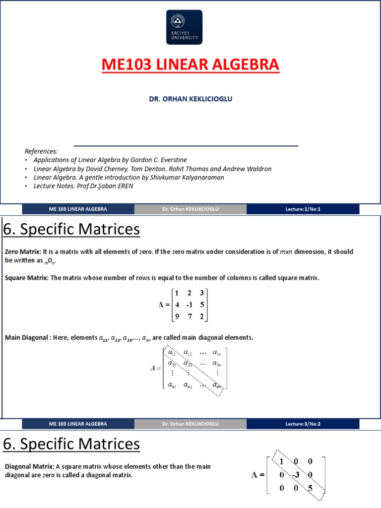 ME 103 LINEAR ALGEBRA Dr. Orhan KEKLIKCIOGLU Lecture:1/No:1