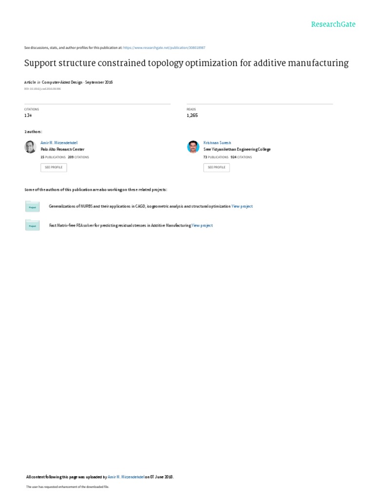 volume, thereby leading to designs that are AM friendly. In Section 2, prior research on support
