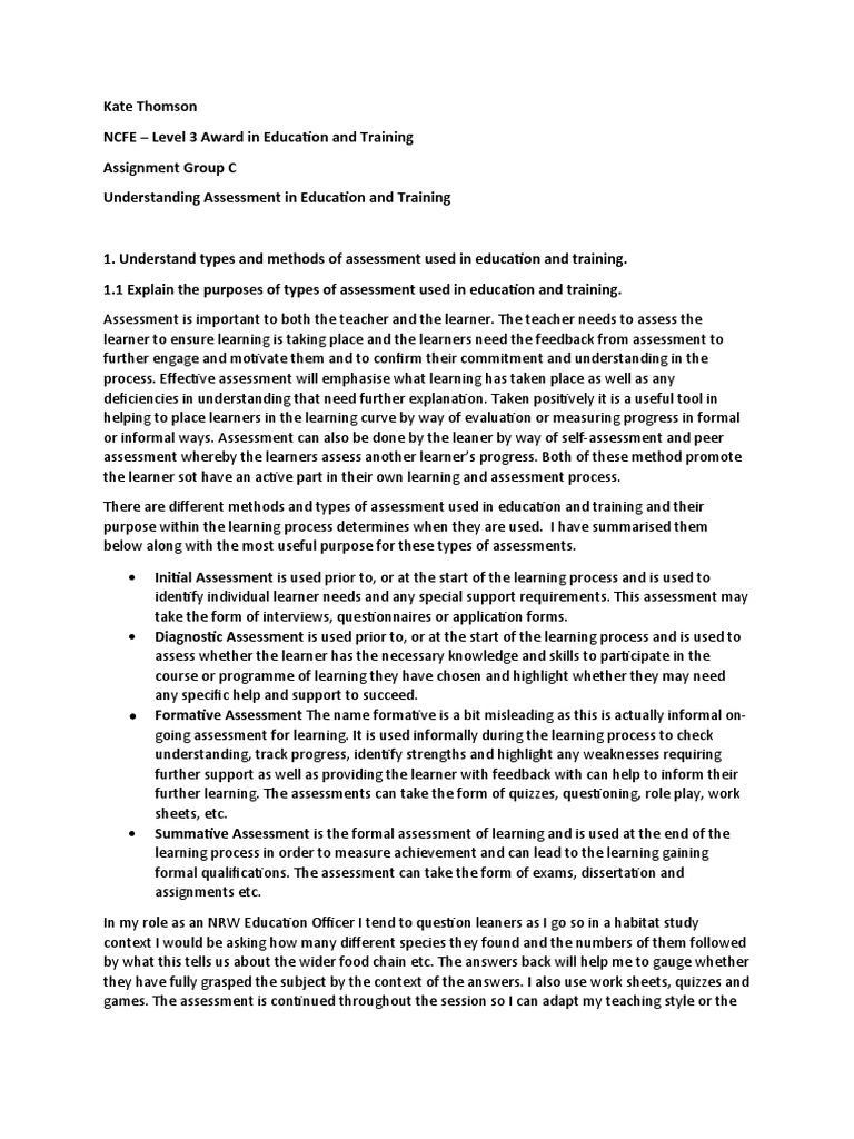 1.2 Describe characteristics of different methods of assessment in education and training.