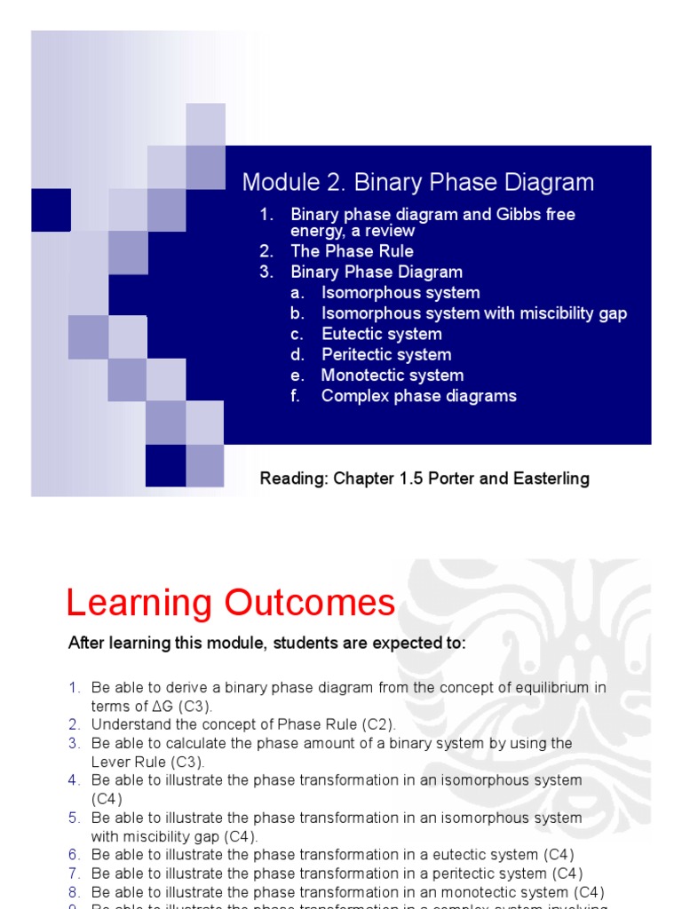 1. Be able to derive a binary phase diagram from the concept of equilibrium in