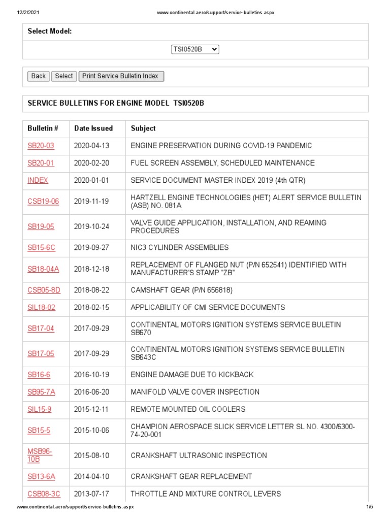 12/2/2021 www.continental.aero/support/service-bulletins.aspx