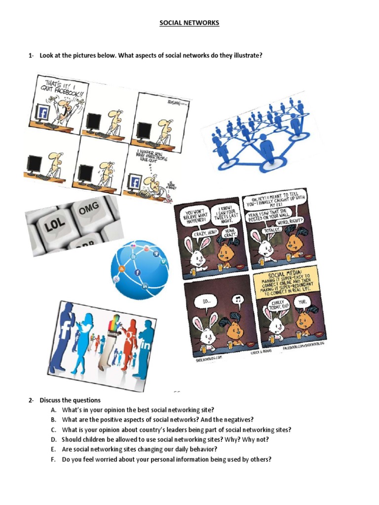1- Look at the pictures below. What aspects of social networks do they illustrate?