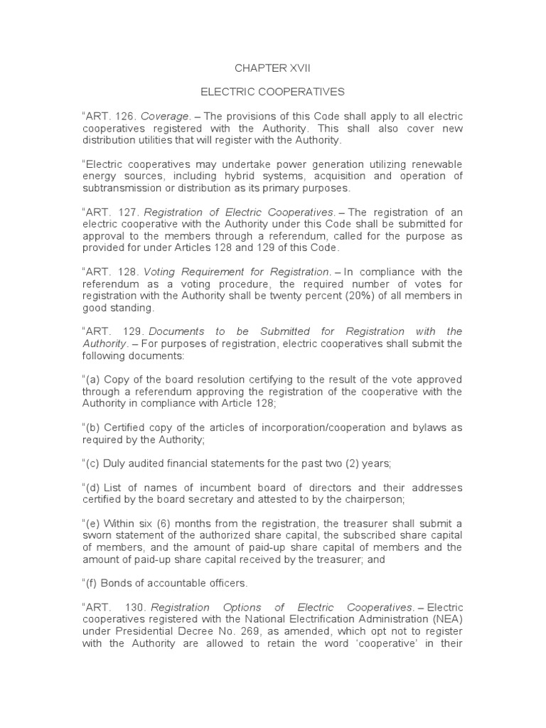 “ART. 127. Registration of Electric Cooperatives. – The registration of an