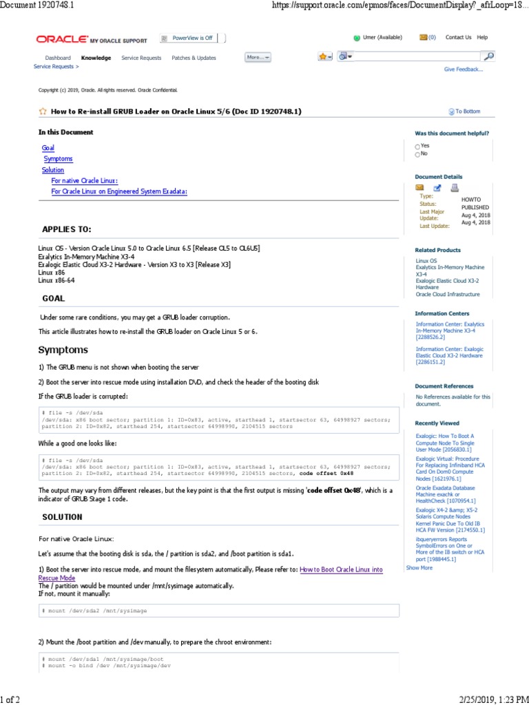 This article illustrates how to re-install the GRUB loader on Oracle Linux 5 or 6. In-Memory Machine X3-4