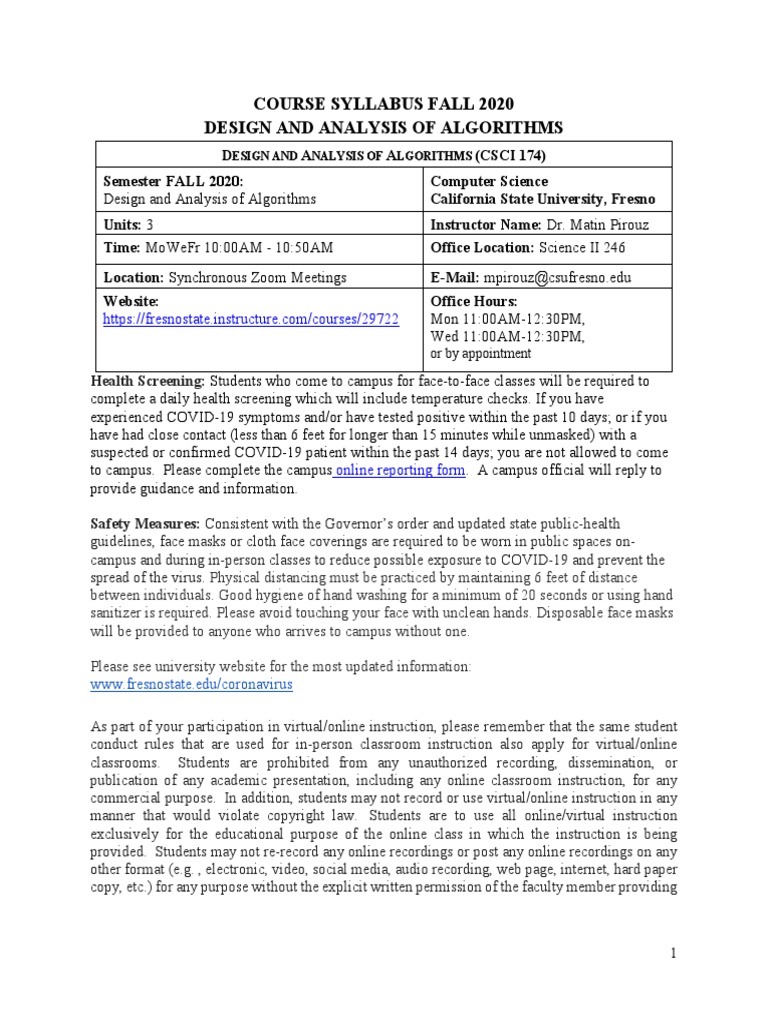 Units: 3 Instructor Name: Dr. Matin Pirouz
