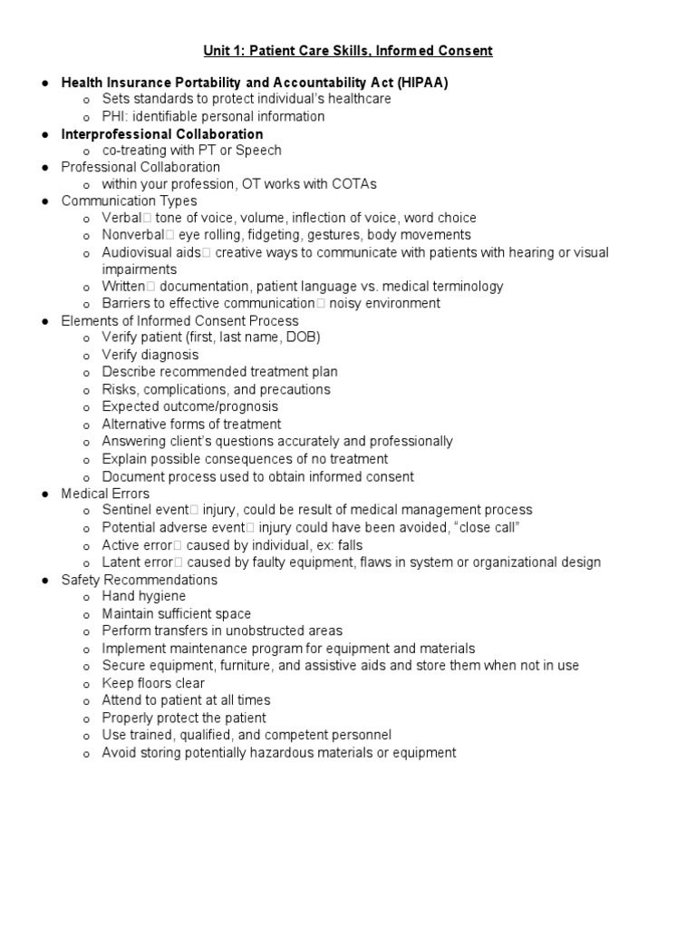 Unit 1: Patient Care Skills, Informed Consent